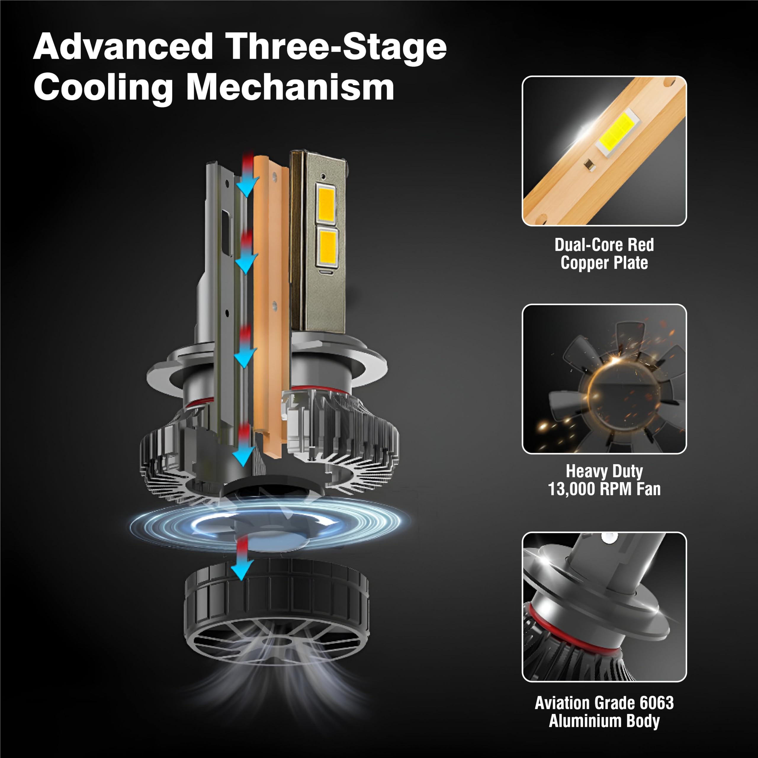 MIKANIX 1 Year Warranty Ultra Bright H4 Fitting 130 Watt LED Headlight Bulb| High And Low Beam| Metal Body Lens Projector Headlamp Bulb With Cooling Fan Universal Fit all Bikes and Cars