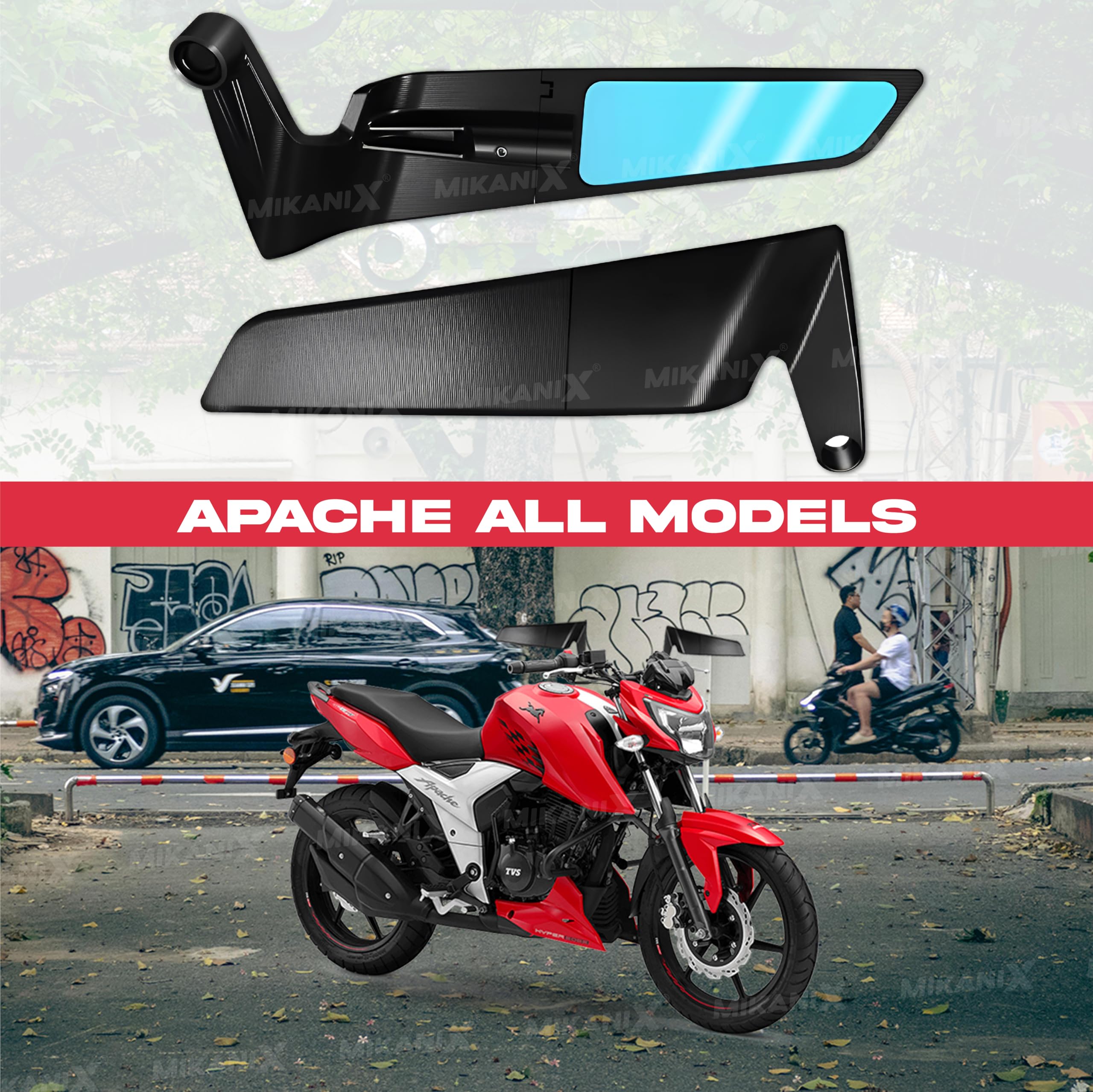 MIKANIX Bike Rear View Side Handle Bar Concave Glass| York Nut Fitting Glass | Stealth Convex Glass Compatible with Apache 160 | 200
