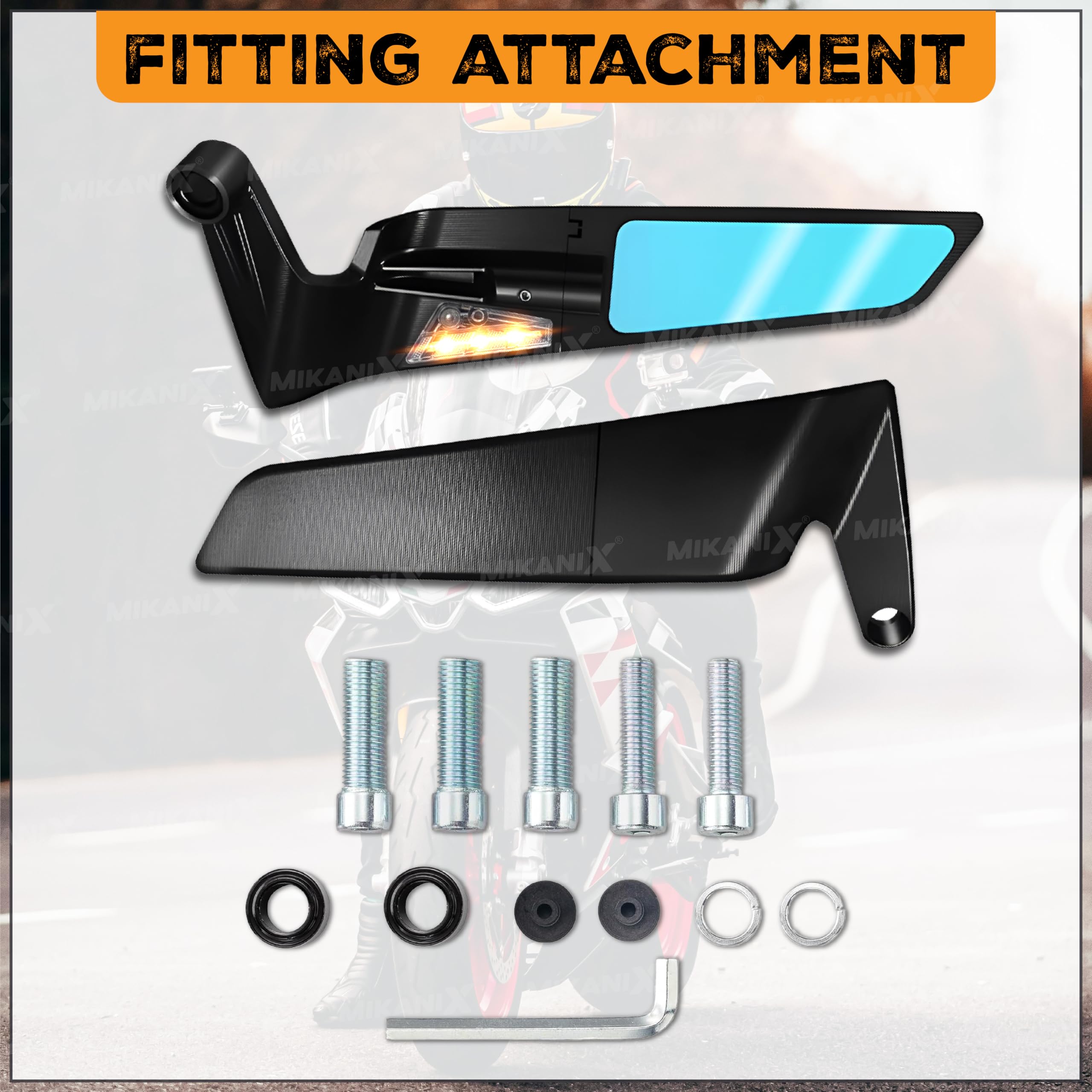 MIKANIX Scooty Rear View Side Handle Bar York Nut Fitting Mirror | LED Stealth Convex Glass Mirror For Yamaha AEROX 155cc