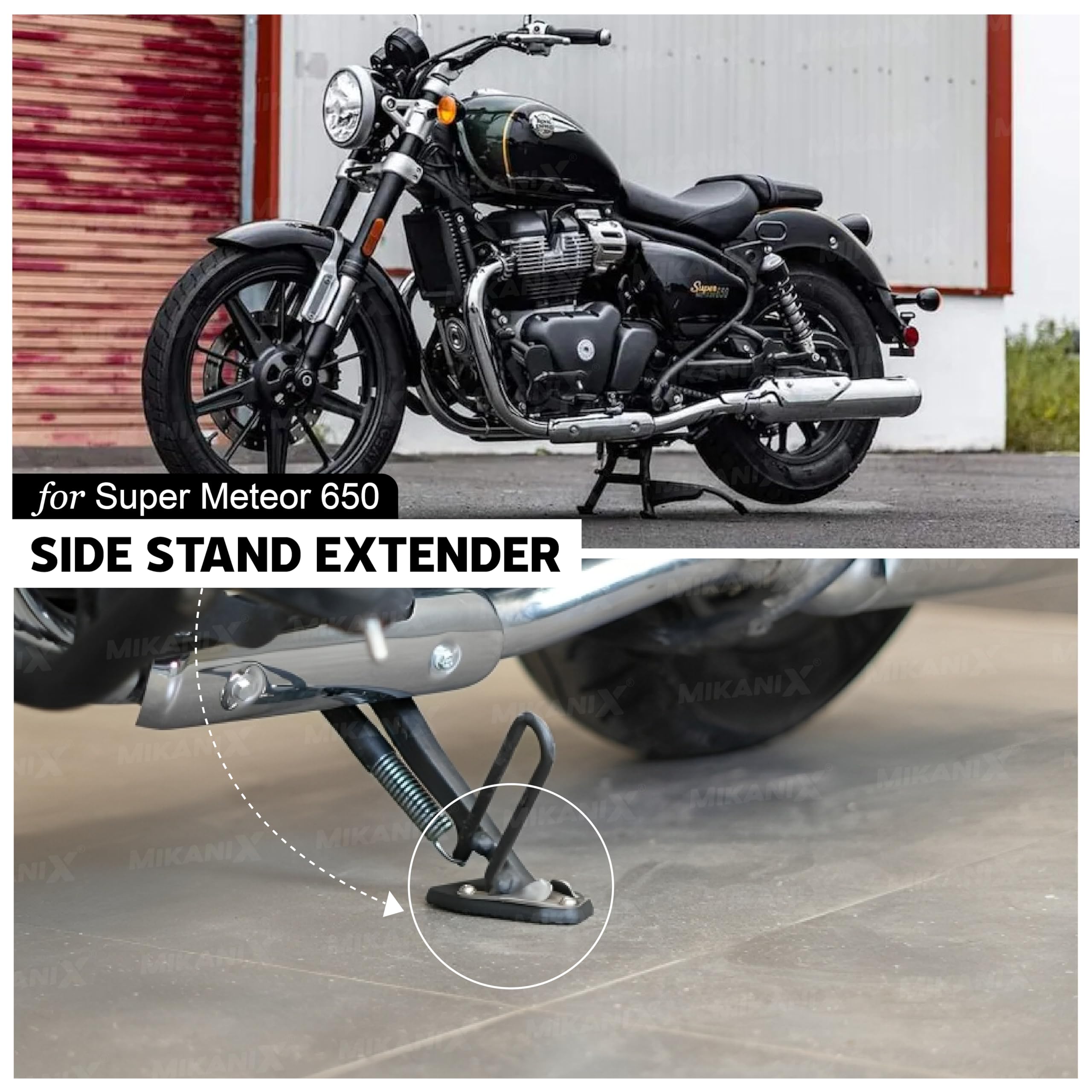 MIKANIX Stainless Steel Side Stand Extender | Side Stand Pad for Royal Enfield Super Meteor 650