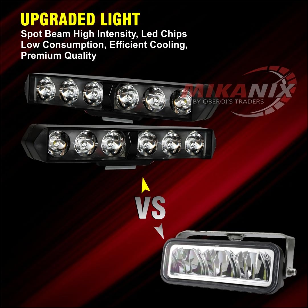 MIKANIX Universal 6 LED Bar Flash Light | Switch Button 6500K Super Bright Fog Light Lamp | Spot Work|Off Road Driving With Flashing/Blinking Mode For Bike, SUV Car & Truck