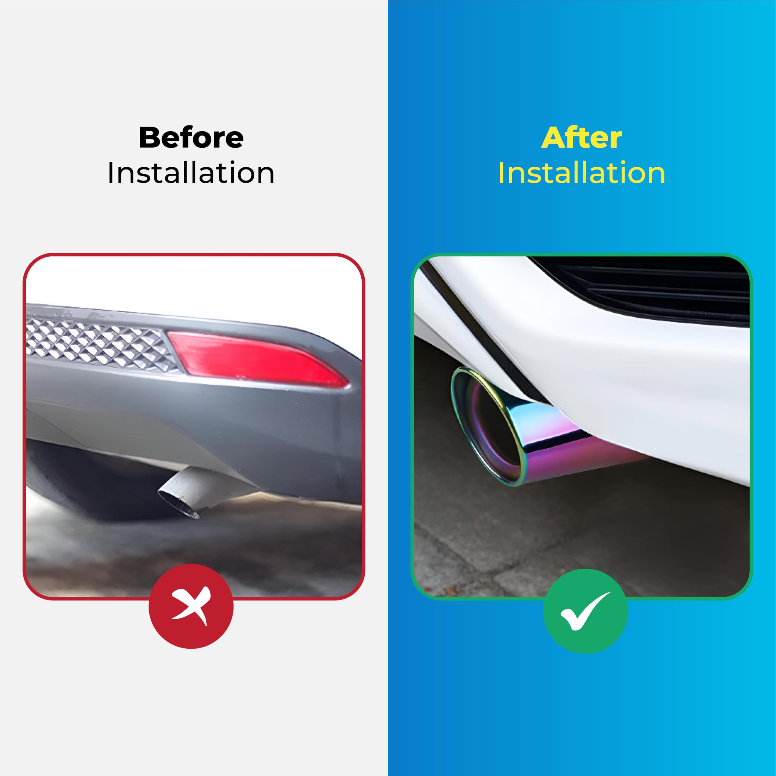 MIKANIX Universal Car Exhaust Muffler Tip | Stainless Steel Burnt Look Silencer End Pipe | Anti-Rust, Stylish Oval Exhaust Tail Pipe with Fitting Kit (MULTICOLOR)