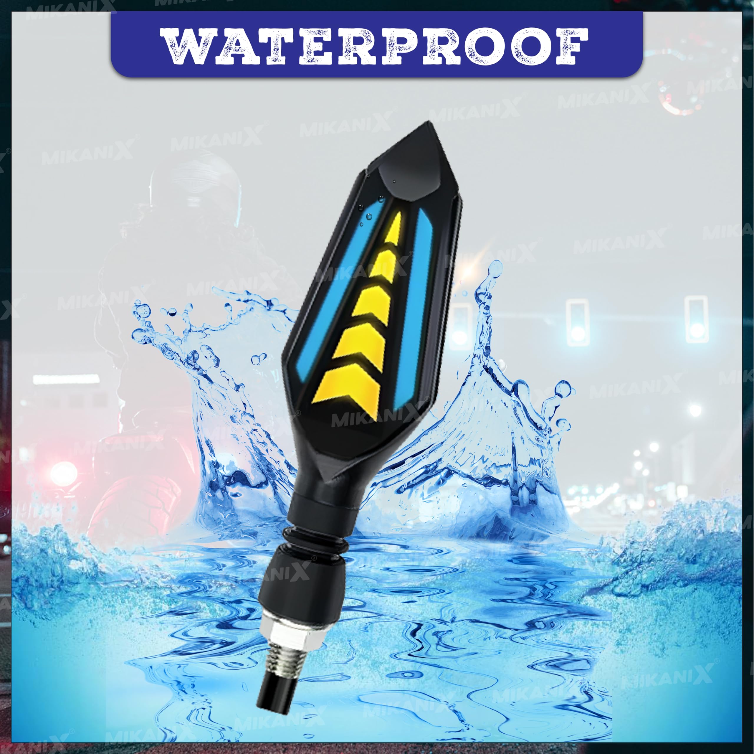 MIKANIX Universal Yellow/Blue LED Running Light DRL Bike Turn Signal Indicator Lamp Universal for Motorbikes